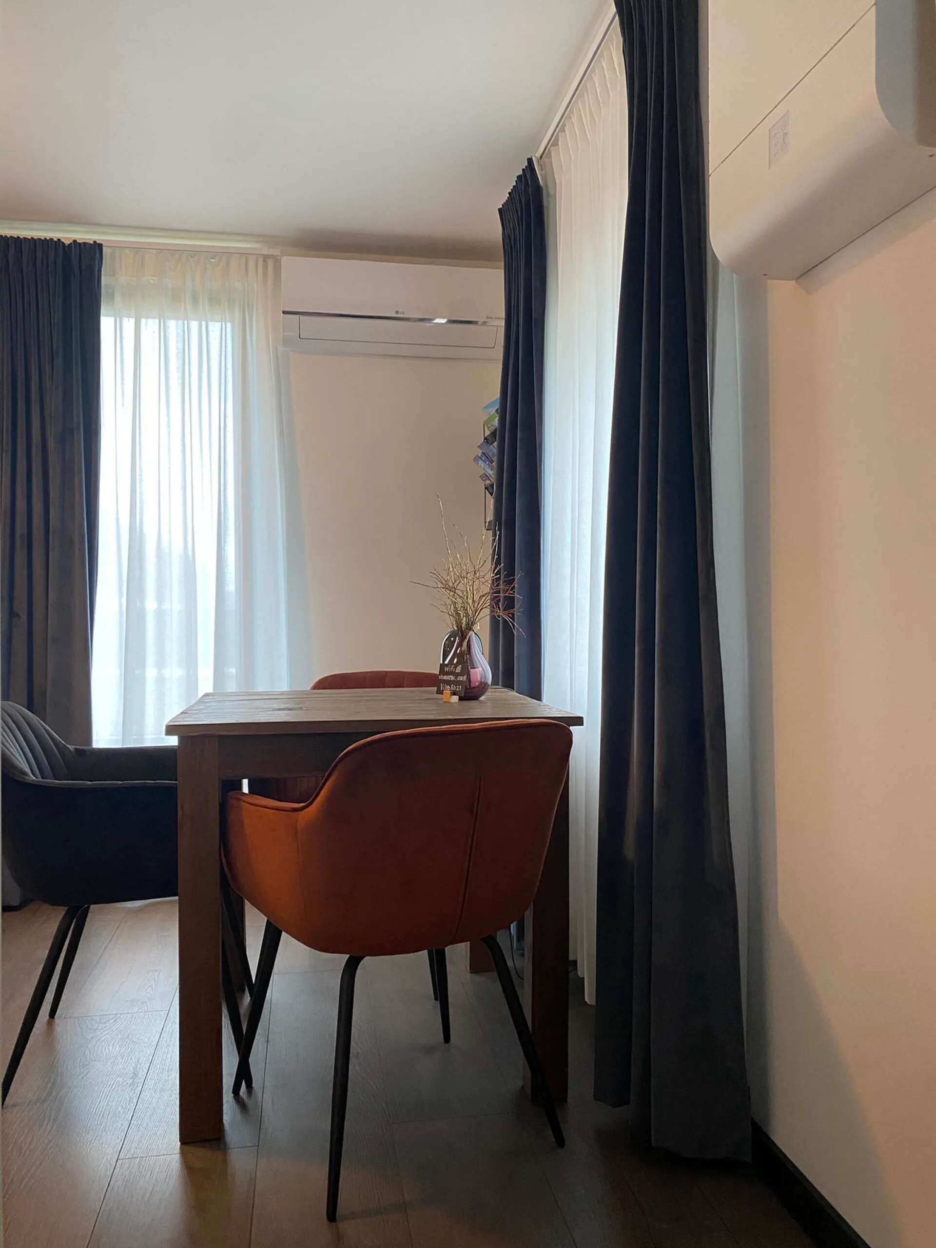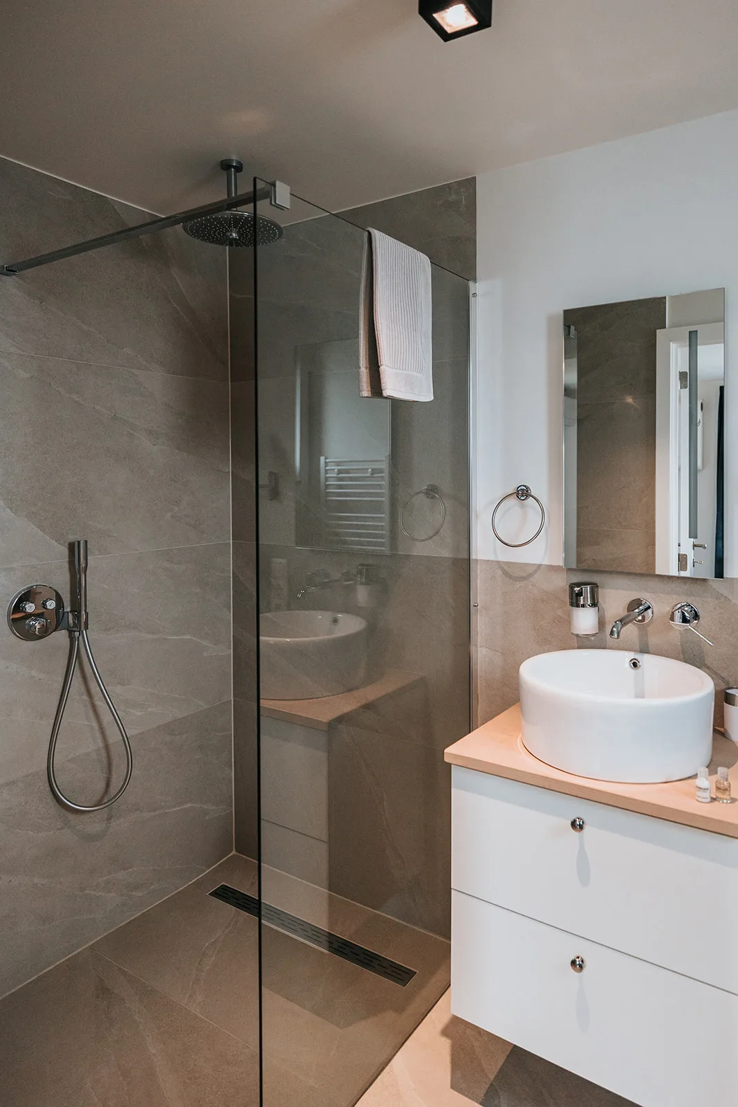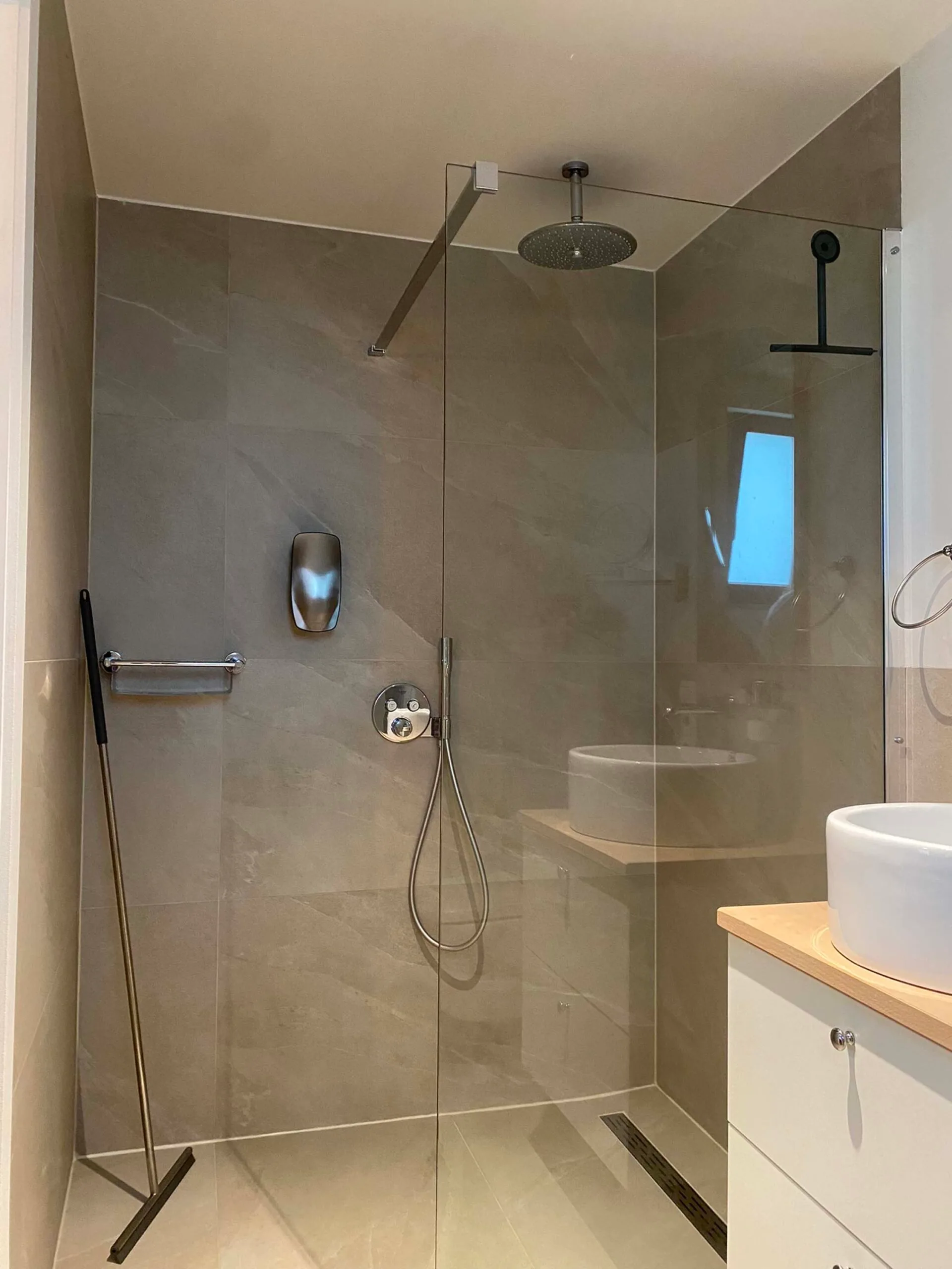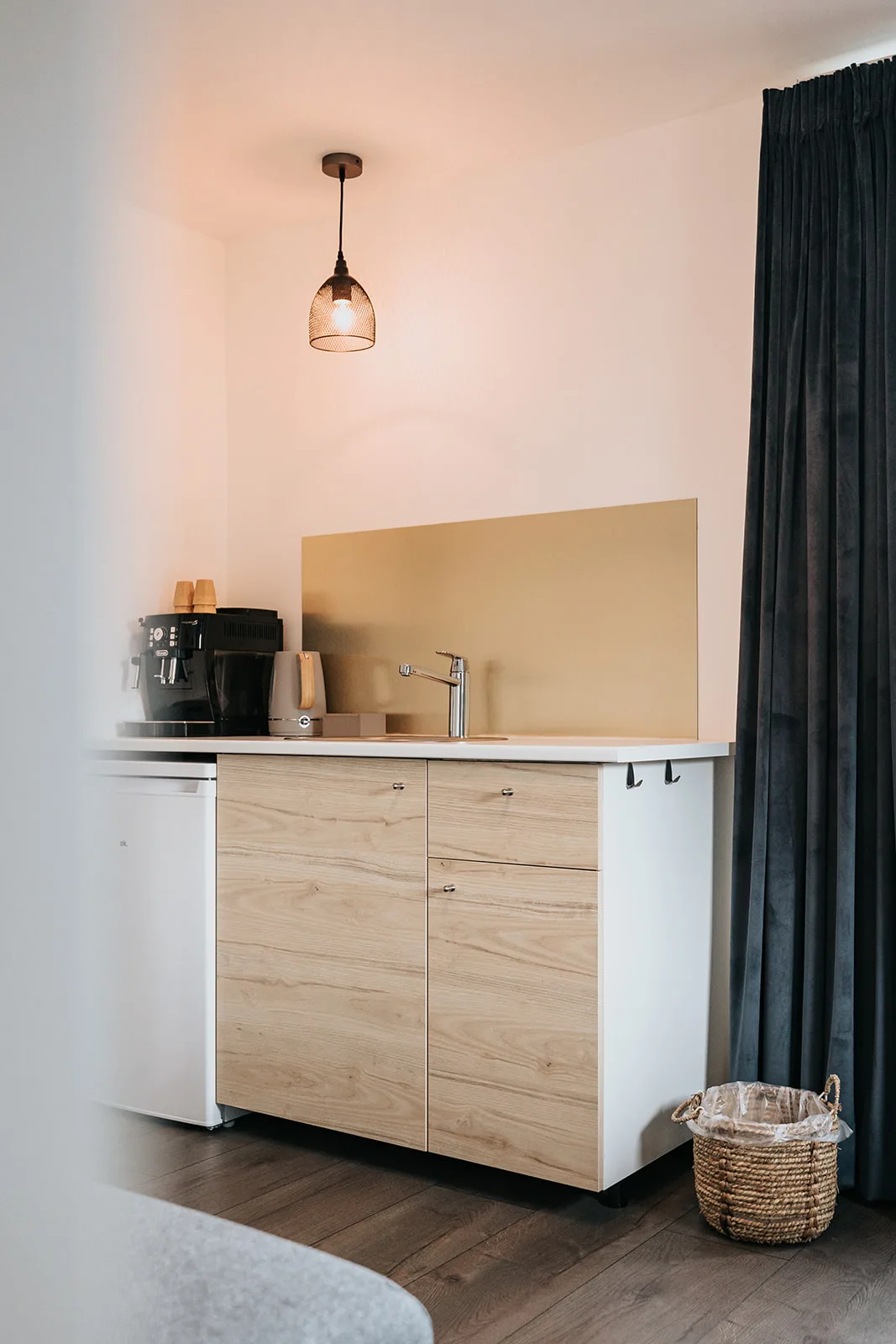 De kitchenette biedt de mogelijkheid om zelf koffie en thee te maken of bijvoorbeeld iets op te warmen in de magnetron. Naast de kitchenette vind je natuurlijk ook de badkamer. Voorzien van een toilet, wastafel en luxe stortdouche. Het benodigde bad textiel mag je natuurlijk van ons verwachten.